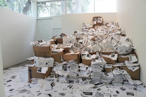 This project is old hat for Kenneth Goldsmith. Last year, his printing project was even more ambitious. He attempted to print out the whole internet with the aid of whoever was interested. You may have read about it on the Huffington or Washington Posts. You may have signed the unsuccessful (by 26 measly signatures) petition to stop the act. You may have even helped Goldsmith by printing out some Youporn search results. Not many spectators came out to see it, but there it sat at a gallery in Mexico City with over 20,000 submissions by 600 people who helped the installation reach a total weight of 10 tons.